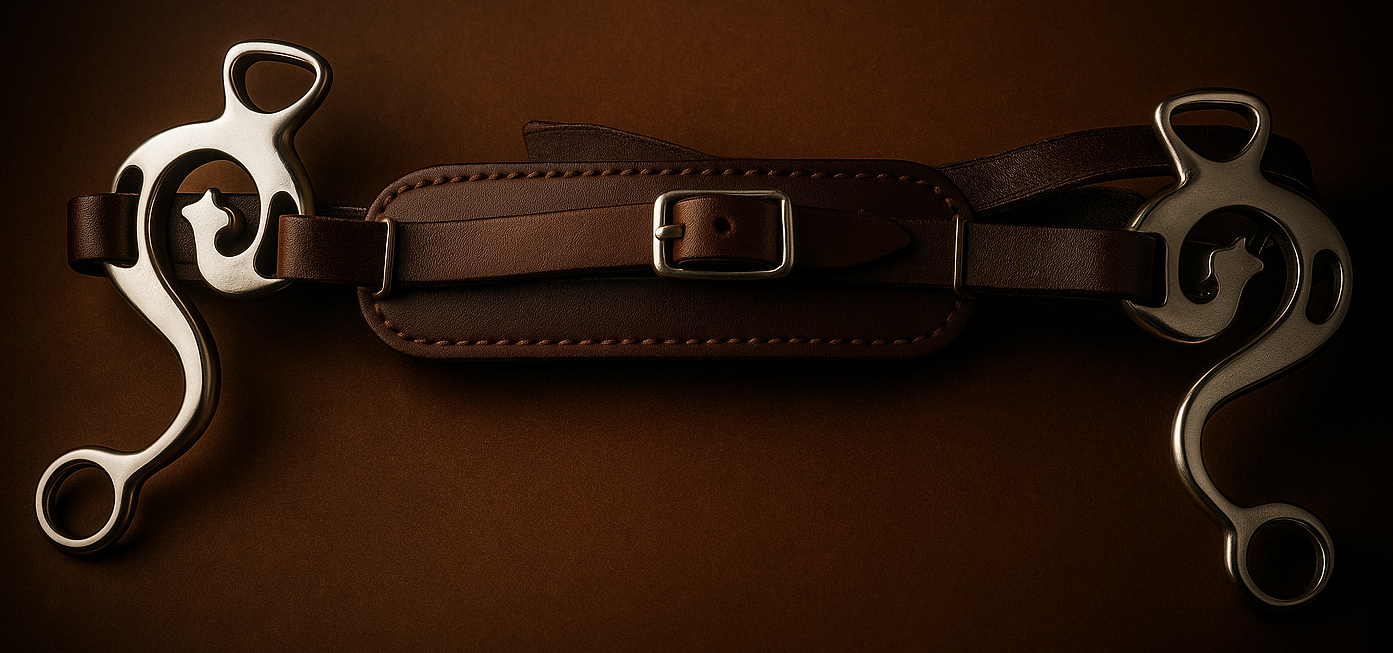 Rowland Escuela hackamore is a unique type of horse tack that replaces the traditional bit in a bridle. It features a noseband with reins attached, allowing for control through pressure applied to the horse’s nose and face instead of its mouth. This method is particularly useful for training or riding horses that might have dental problems or are sensitive to bits.