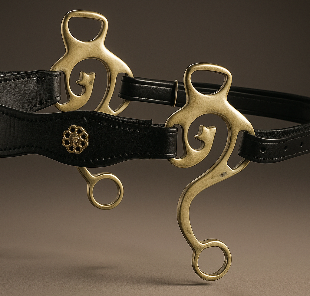Rowland Escuela hackamore is a unique type of horse tack that replaces the traditional bit in a bridle. It features a noseband with reins attached, allowing for control through pressure applied to the horse’s nose and face instead of its mouth. This method is particularly useful for training or riding horses that might have dental problems or are sensitive to bits.
