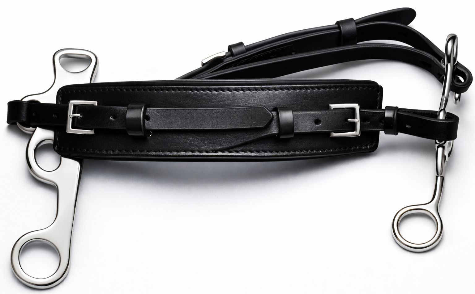 Rowland Hackamore Straight Stainless Steel Shanks with Genuine Leather Nose-band is a unique piece of horse tack that replaces the traditional bit in a bridle. It usually features a nose-band with reins attached, allowing for control by applying pressure to the horse’s nose and face instead of its mouth. This makes it a great option for training or riding horses that might have dental problems or are particularly sensitive to bits.