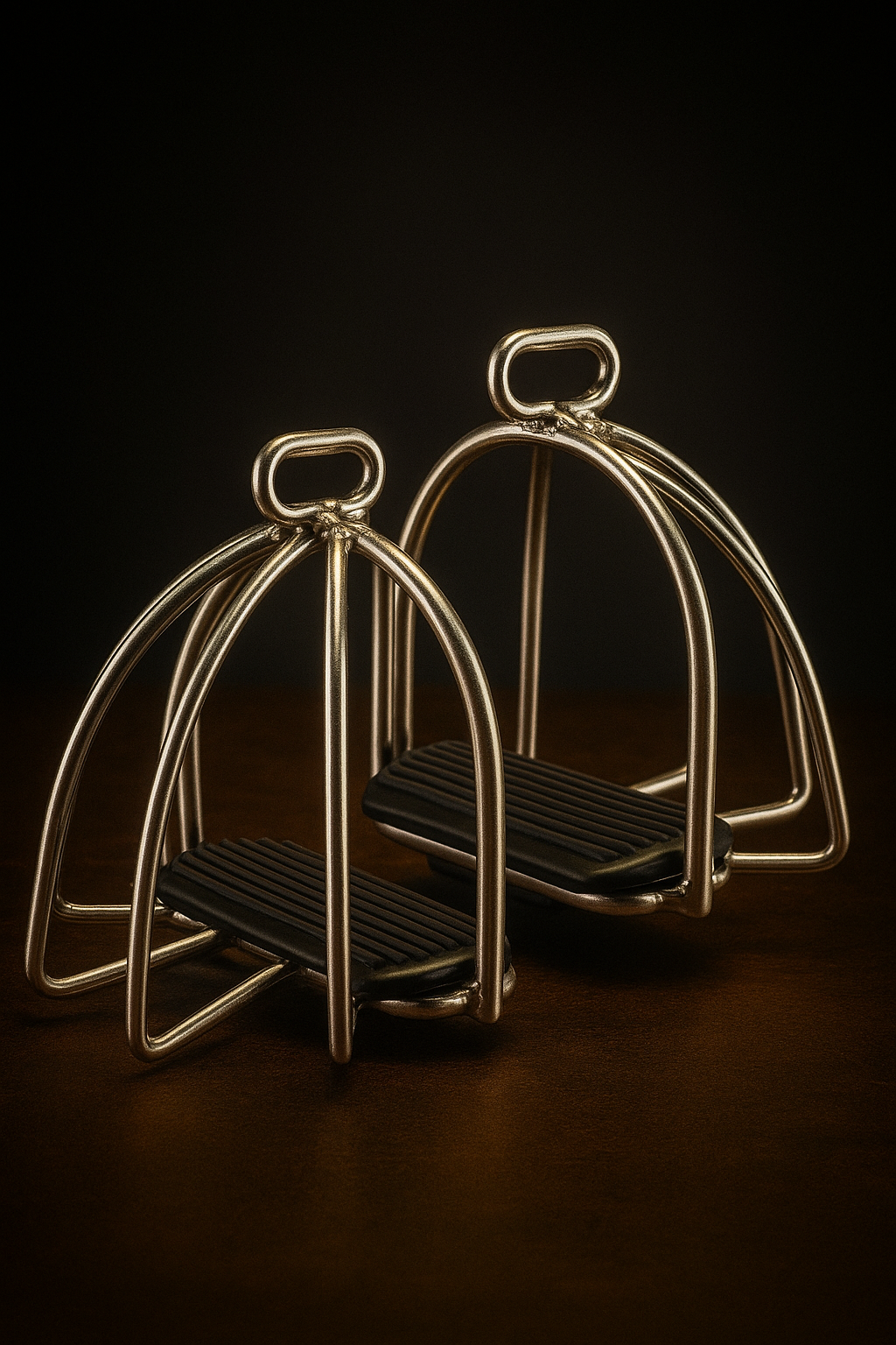 High-tech, lightweight stirrups designed with a flexible arm and wide tread for enhanced safety and comfort, popular in show jumping and eventing.