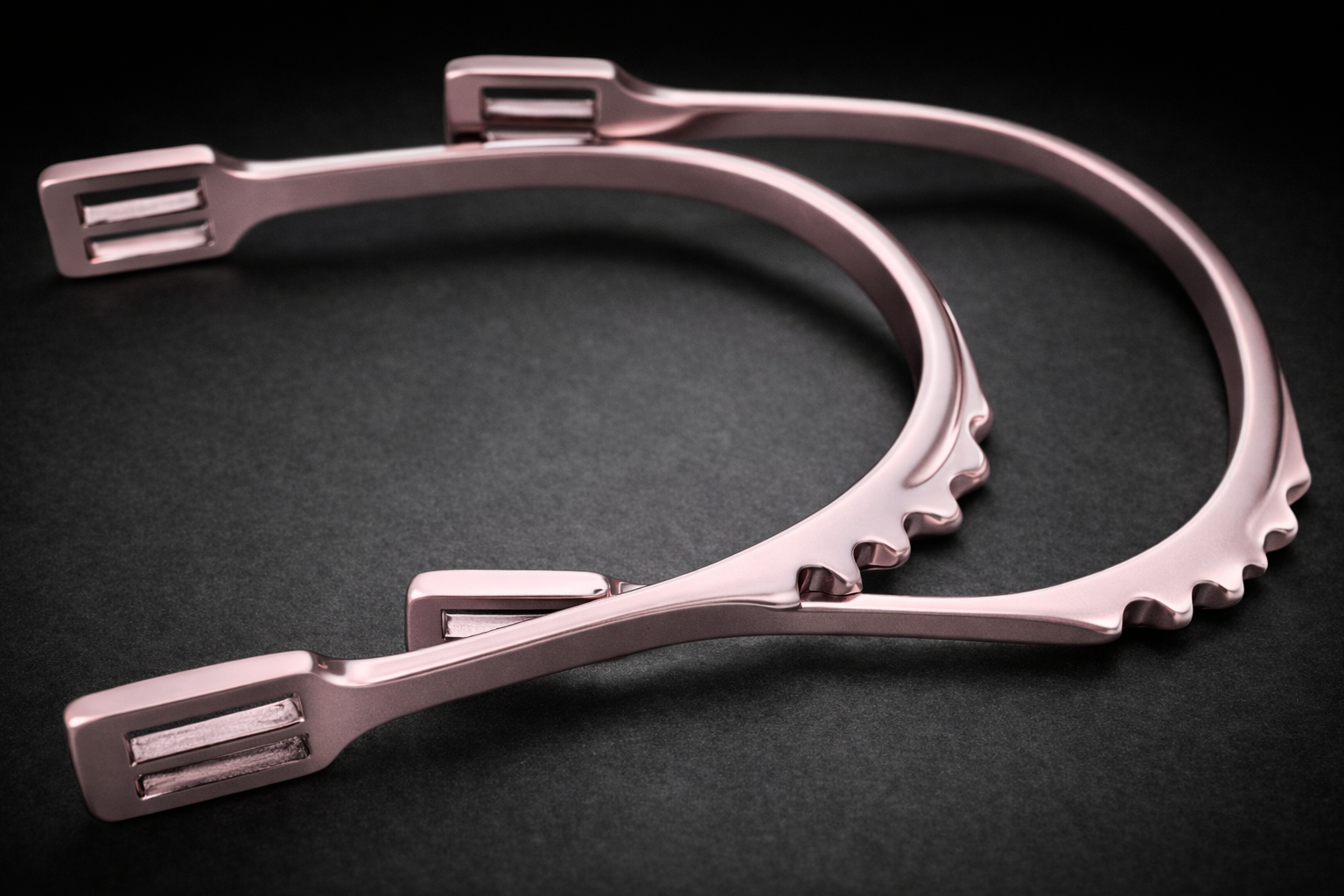 Rowland Stainless Steel Three-Tooth light pink spurs are specially crafted for Western riding, offering a gentle yet effective way to communicate with your horse. Unlike the traditional spurs, these have three rounded teeth on the shank, allowing riders to apply pressure without having to twist their heels or knees too much. This thoughtful design keeps your leg in a natural position, making it especially beneficial for younger or smaller riders who may find standard spur designs a bit challenging.