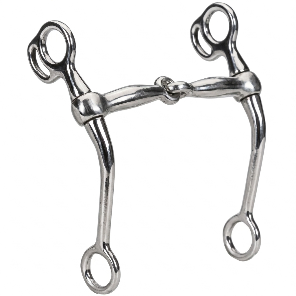 Single-Jointed Mouthpiece: The mouthpiece is similar to a snaffle with a single joint in the center, creating a nutcracker effect that applies pressure to the bars, tongue, and roof of the mouth.